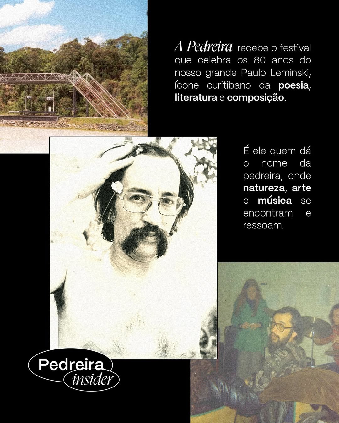 Este conteúdo antecede os shows da Pedreira Paulo Leminski, com informações sobre o evento, histórias e curiosidades sobre o artista.